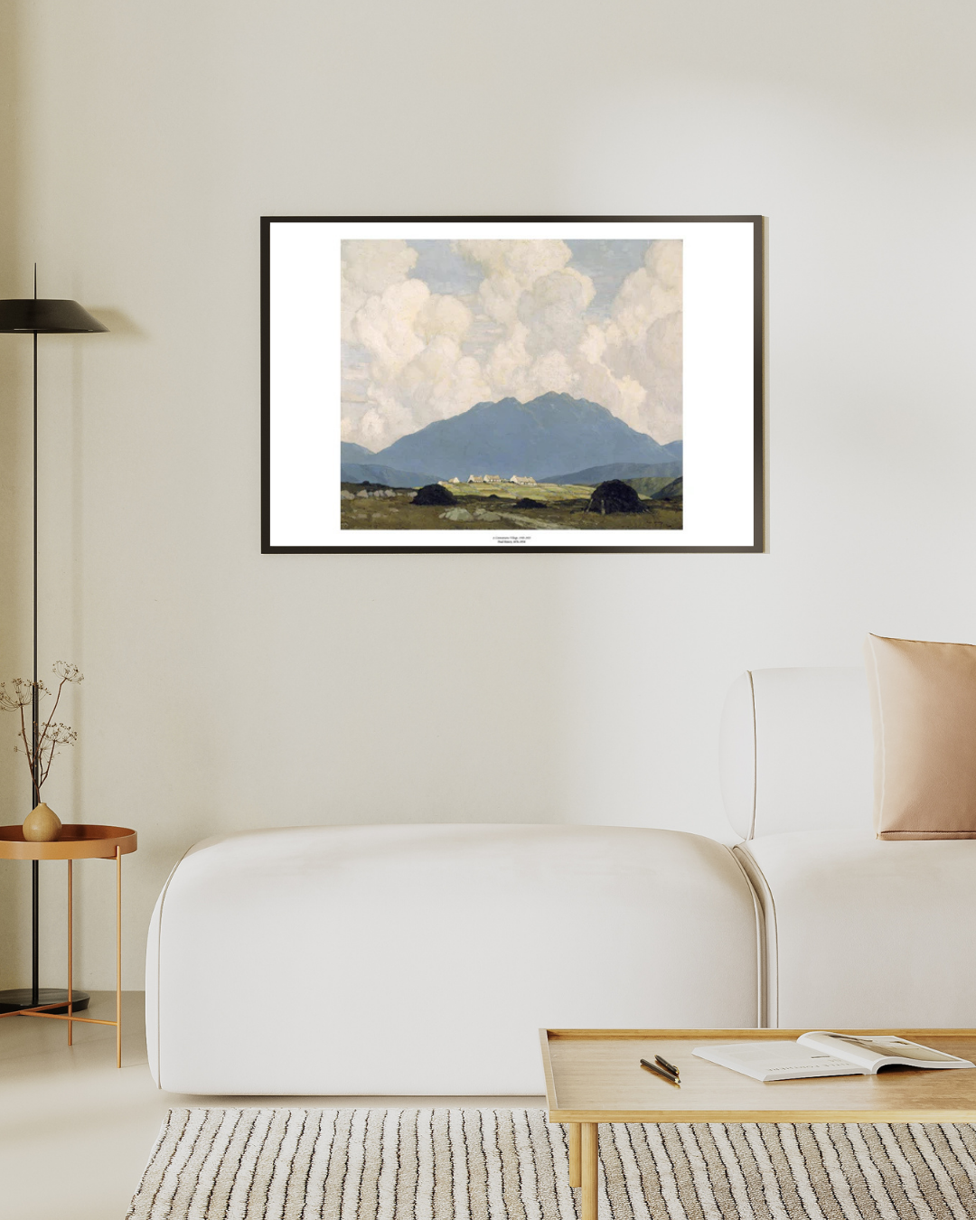 This unusually large painting by Henry records the view eastwards from the quay on the Clifden road, just over a kilometre west of Letterfrack, County Galway. The cluster of diminutive, white-washed cottages, picked out by sunlight against a backdrop of mountains and an impressive sky, is a motif that recurs in Henry's landscape painting from the early 1920's onwards. These cottages emphasis the grandeur of the local scenery while alluding to rural communities isolation and reliance on the land.