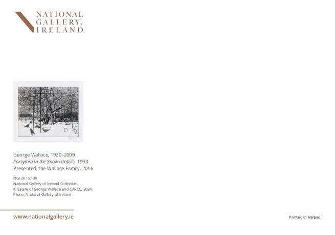 The National Gallery of Ireland's popular Christmas card range, all of which are based on images from the Gallery's collection. This 10 pack of cards contains George Wallace's Forsythia in Snow.