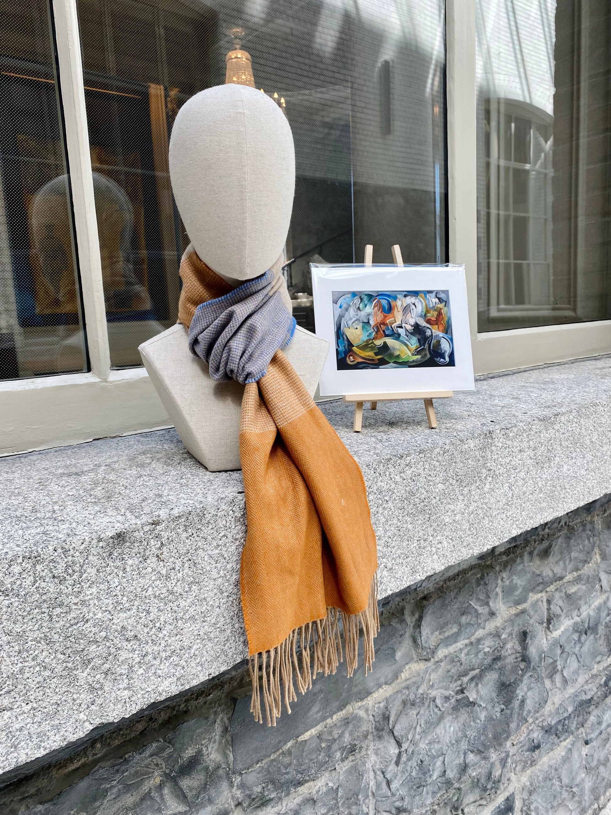 Woven at their woollen mills in county Tipperary with the finest merino wool, John Hanly & Co. have created a scarf in collaboration with the National Gallery for the Mainie Jellett and Evie Hone exhibition.